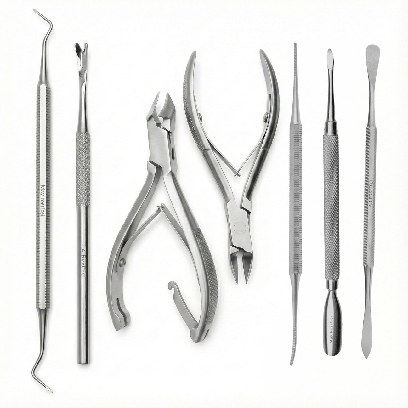 Pediküre-Set - Nagelpflege Etui aus Kunstleder - Farbe: Rot - 7-teilig - Nagelzange - Nagelschere - Hautschere - Nagelfeile - Eckenfeile - Nagelhautschieber